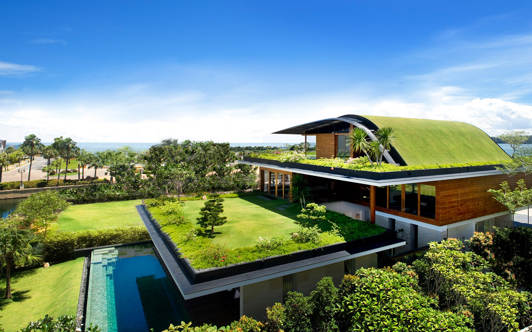 ویلای باغ آسمان در یک ملک لوکس فوق العاده منحصر به فرد در جزیره سنتوزا مجاور سنگاپور واقع شده است. جزیره سنتوسا یک محوطه مجلل ساحلی مجلل و معتبر است که به عنوان پناهگاه میلیاردرها شناخته می شود. . این خانه بزرگ چند لایه چهار طبقه بزرگ تمام تلاش خود را می کند تا در همه سطوح با باغ ها و فضای سبز ارتباط برقرار کند.