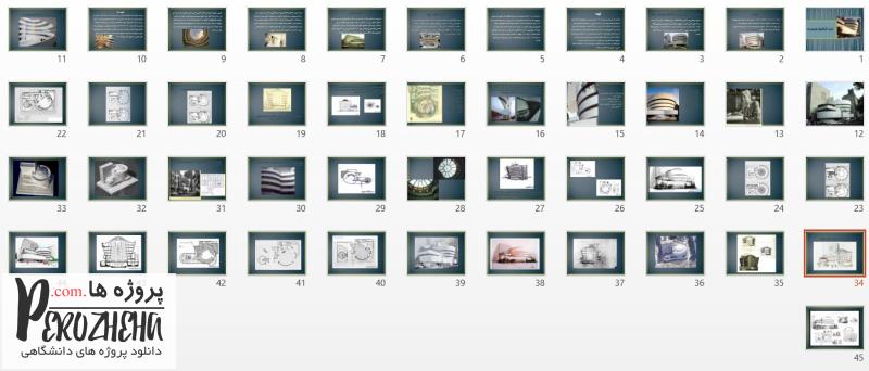 پاورپوینت موزه گوگنهایم نیویورک به صورت پاورپوینت و شامل ۴۵ اسلاید می باشد که به بررسی و تحلیل کامل این بنای معماری پرداخته شده است.
