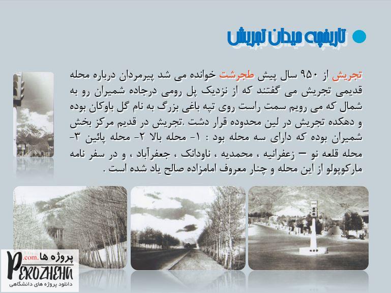 پاورپوینت میدان تجریش شامل ۶۸ اسلاید و قابل ویرایش است.