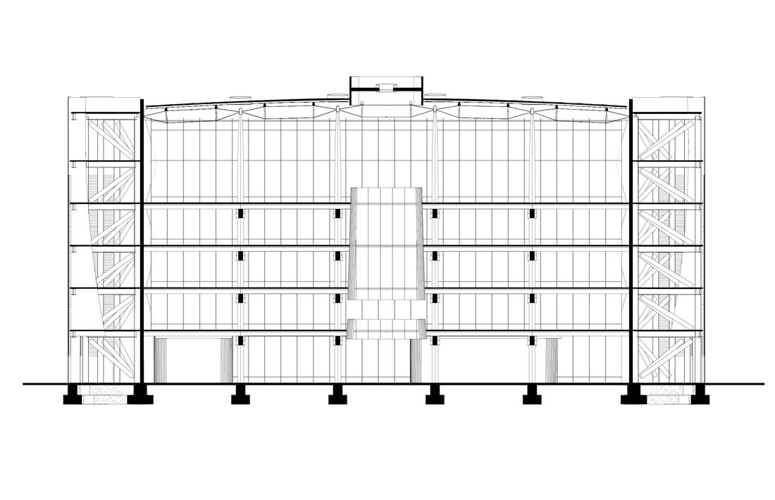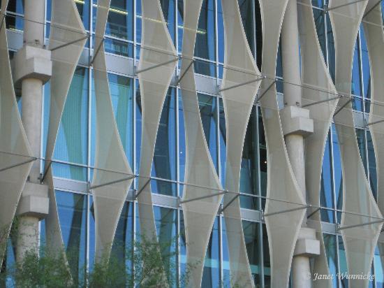 طبقه دوم کتاب های مرجع، رایانه های در دسترس عموم و اسناد دولتی را در خود جای داده است. طبقه سوم شامل دفاتر مدیریت و خدمات پشتیبانی سایرفضاهای غیر عمومی است. در طبقه چهارم کلکسیون های خاص و امکانات سخنرانی جانمایی شده است. در دو وجه شرقی و غربی بنا فرمی منحنی شکل به مستطیل اصلی بنا الحاق شده است که تمامی عملکردهای خدماتی نظیر پلکان های اضطراری، سرویس ها و تجهیزات مکانیکی و الکترونیکی را در خود جای داده است. این دوحجم در واقع به مثابه عایقی در برابر اشعه تند خورشید برای فضاهای اصلی کتابخانه عمل می کنند. شیشه های مات در نمای شمالی و جنوبی نیز مقدار روشنایی لازم برای مطالعه و دید از داخل به چشم انداز شهر را میسر می سازند. تابش خورشید از شمال شرقی و شمال غربی توسط پارچه هایی سفید رنگ که همانند بادبان بر روی بدنه شمالی نصب شده و جلوه های متفاوت در این نما را ایجاد می کنند کنترل می شود. در جبهه شمالی نیز سایبان هایی آلومینیومی قرار دارند که حرکت آنها توسط برنامه های کامپیوتری کنترل شده و زوایای انها متناسب با مسیر تابش خورشید تغییر می کنند.