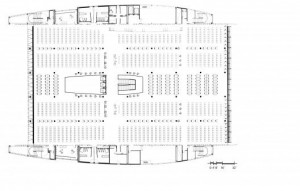 از جمله مهم ترین ایده های طراحی بنا فراهم اوردن بالاترین امکان دسترسی ازاد به کتاب ها برای مخاطبین بوده است که در نتیجه ان بنایی با پلانی ازاد و شبکه سازه ای منظمی به وجود امده است که ارایش فضایی سازه مکان قفسه های کتاب و مسیرهای دسترسی را نیز تعریف می کند. سیستم شبکه ستون ها به نحوی است که امکان گسترش پروژه در آینده را نیز فراهم اورده است همچنین در طبقات زیر زمین از ساماندهی مناسب ستون ها حداکثر فضای ممکن جهت پارک اتومبیل حاصل شده است. طبقه همکف شامل کتاب های کودکان، مجلات فرهنگی، فیلم و کتاب های داستانی می باشد. برودر طبقه همکف را به مرکز خرید کوچکی تشبیه می کند که نیاز های فرهنگی روزمره مردم عادی را برآورده می کند.